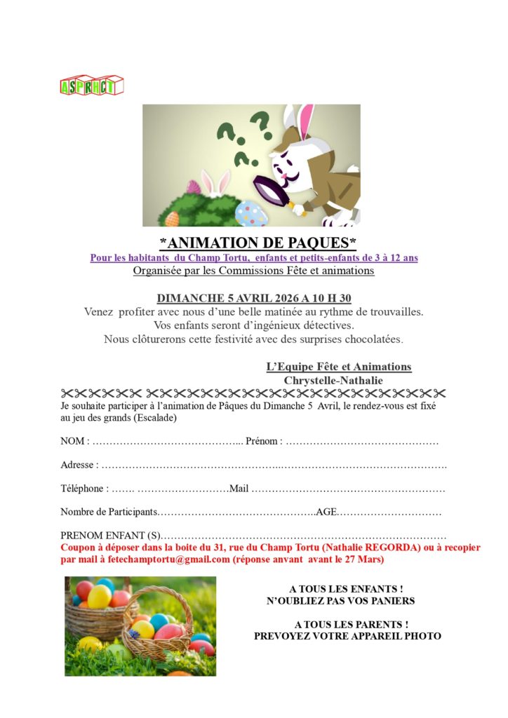 Animation de pâques, la voici la revoilà, à noter dans vos agendas, Dimanche 5 Avril 2026…